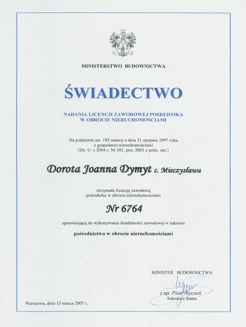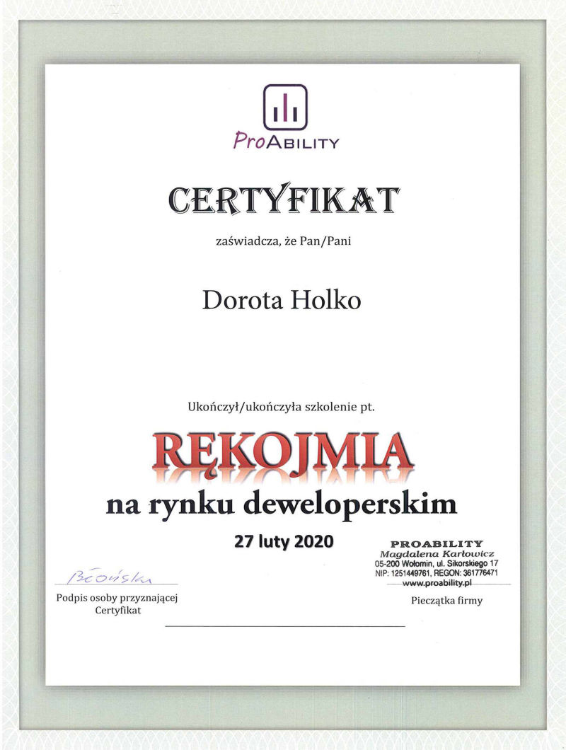 Doświadczenie zawodowe zdobywałam przy złożonych inwestycjach deweloperskich, zarówno mieszkaniowych jak i usługowych typu condo. Od ponad trzynastu lat jestem związana z rynkiem nieruchomości, stale świadcząc usługi na rzecz spółek handlowych jak i podmiotów prywatnych.